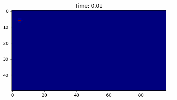 $$ \frac{\partial T}{\partial t} = c^2 \left[ \frac{\partial^2 T}{\partial x^2} + \frac{\partial^2 T}{\partial y^2} \right] $$Para alguna región acotada $x \in [0, a]$ y $y \in [0, b]$. Las condiciones de frontera pueden cambiar y la dinámica está determinada por éstas y por las condiciones iniciales.